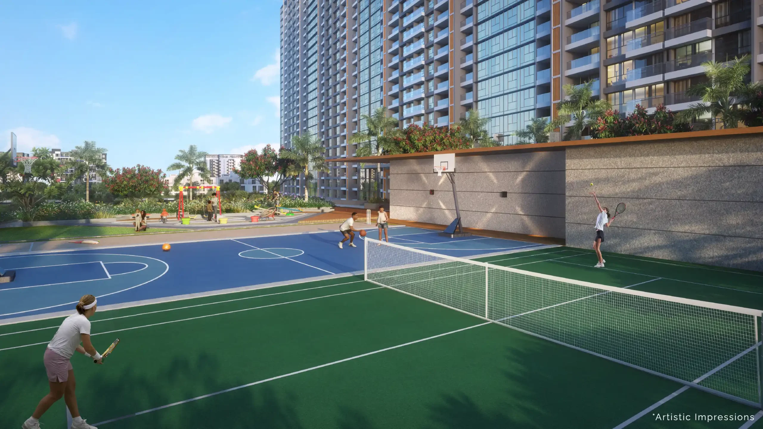 All information, images, visuals, drawings, plans, or sketches shown in this advertisement are the architect’s impressions, provided for representation and illustrative purposes only, and are not to scale. Nothing contained herein constitutes a legal offer or forms part of any legally binding agreement and/or commitment of any kind. While the Promoter endeavors to keep the information accurate and up to date, no representation or warranty, express or implied, is made as to its accuracy or completeness.