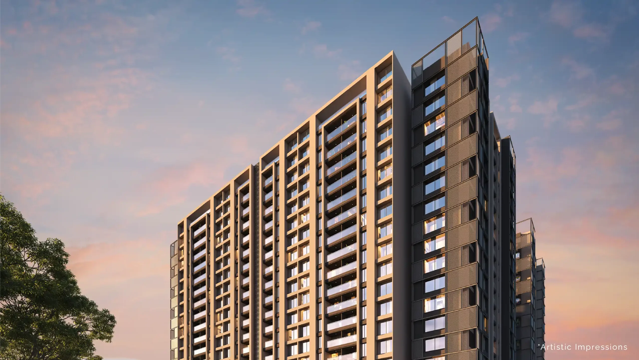 All information, images, visuals, drawings, plans, or sketches shown in this advertisement are the architect’s impressions, provided for representation and illustrative purposes only, and are not to scale. Nothing contained herein constitutes a legal offer or forms part of any legally binding agreement and/or commitment of any kind. While the Promoter endeavors to keep the information accurate and up to date, no representation or warranty, express or implied, is made as to its accuracy or completeness.